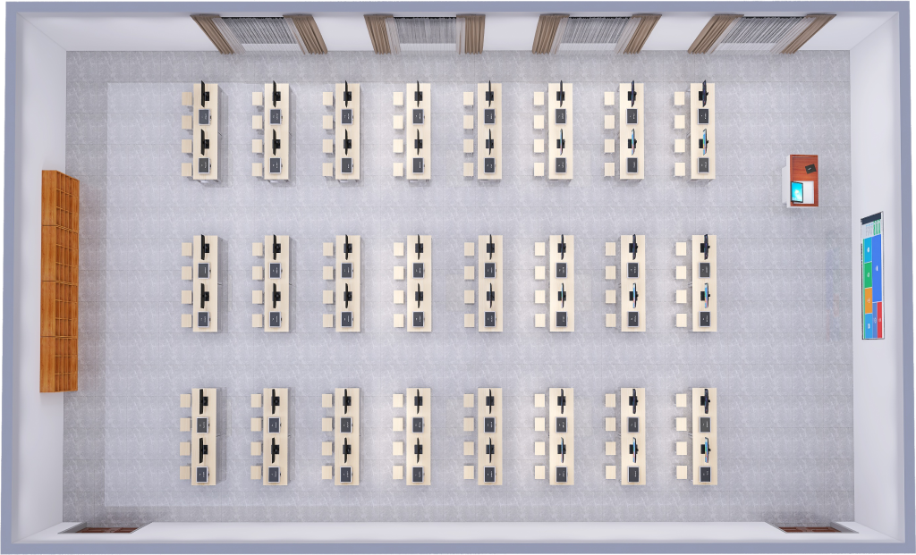 物联网RFID实训室空间设计,包含物联网RFID实验箱、物联网教学云平台、物联网融合云平台、物联网扩展套件箱、物联网实训资源包等。物联网RFID实训室分为理论教学区、RFID实训区、器材存放区。