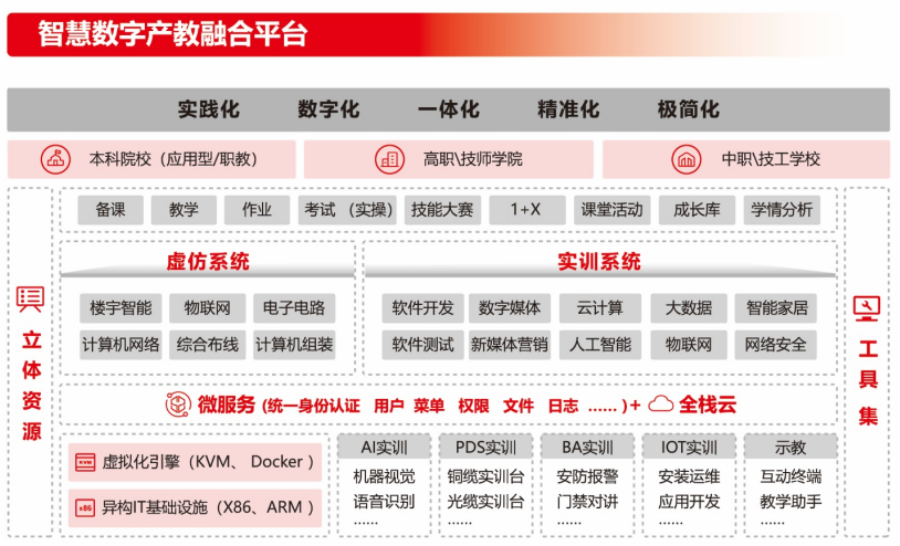 联合龙头企业推出“产业标准 + 教学适配” 实训基地解决方案:在数字经济领域,携手云计算企业打造“云原生开发实训基地”,引入真实项目工单与 DevOps开发流程,实现 “课堂即车间、考试即交付”。目标五年内参与建设多个国家级产教联合体配套实训基地,服务多家行业产教融合共同体。