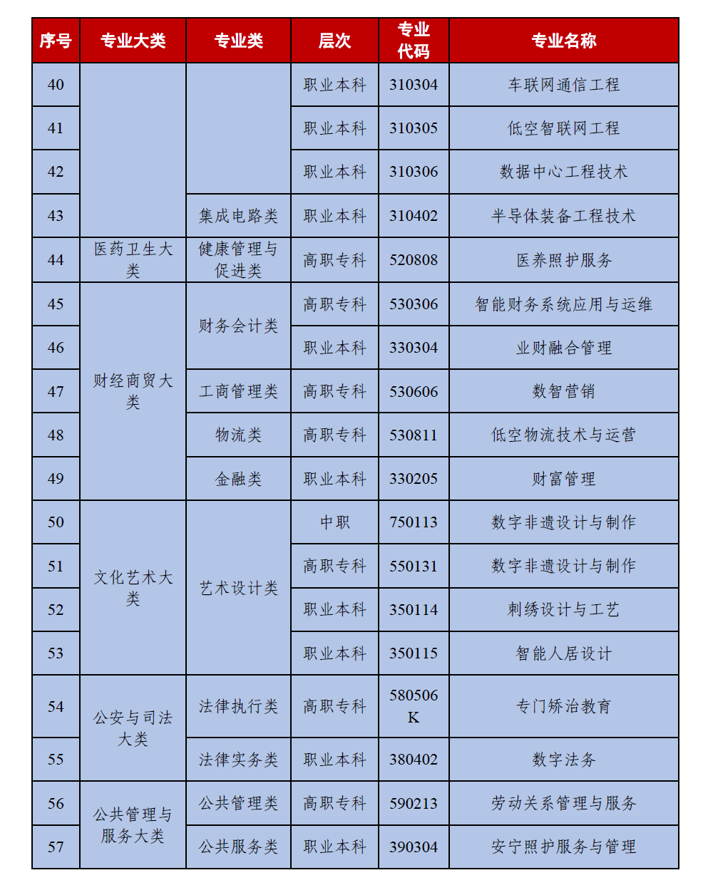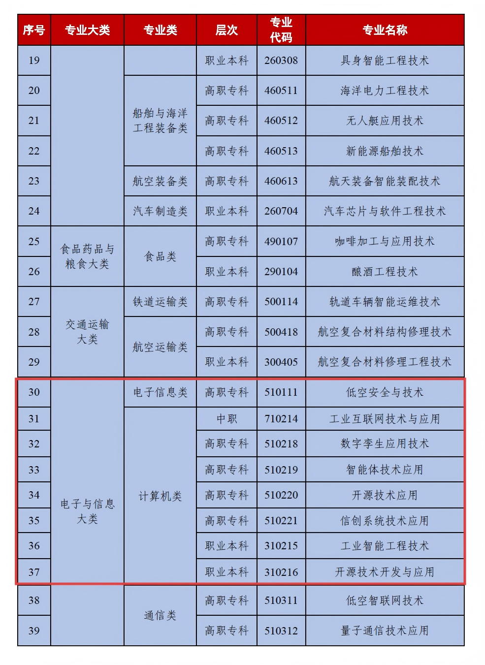 职业教育作为衔接教育链与产业链的关键纽带,其专业设置始终与国家战略、产业升级同频共振。近日,教育部办公厅下发《关于做好2026年职业教育拟招生专业设置管理工作的通知》(教职成厅函〔2025〕27号),《2025年职业教育专业目录增补清单》随文下发。此次专业目录围绕国家战略和区域高质量发展需求,全国共新增57个职业教育专业,其中,电子与信息大类下的电子信息类、计算机类合计新增 7 个专业,涵盖中职、高职专科及职业本科多个层次,新增专业聚焦低空安全、工业互联网、数字孪生、智能体技术、开源技术、信创系统及工业智能等前沿领域。