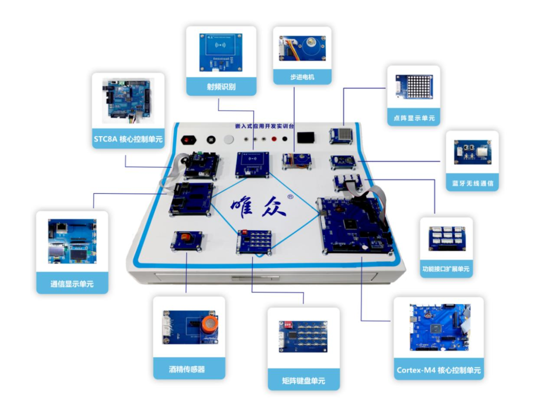 唯众嵌入式实训台以“核心控制单元为中枢,功能模块为节点,操作台为载体”,搭建起协同联动的完整实训生态,让教学更具系统性与逻辑性。