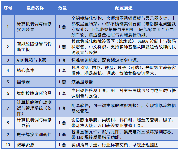 平台将硬件故障设置、诊断卡与故障自动化测试管理系统深度融合,依据国家职业标准与教学大纲,开发覆盖计算机原理认知、硬件组装、系统调试、日常维护、故障检修全流程的标准化实训项目。无论是零基础学生的入门认知,还是专业生的高级维修技能提升,都能在平台上找到适配的实训内容,真正实现“学中做、做中学”。