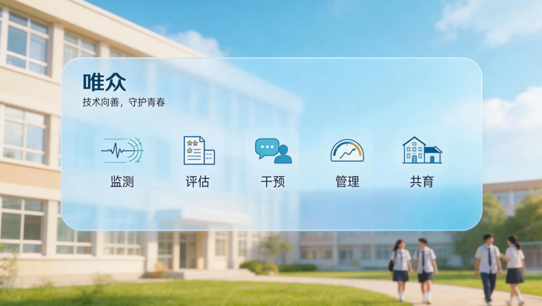 深耕教育领域十六载,唯众始终践行“抱善、守诚、勤勉、笃行”的经营理念,以“AI+专业+行业+教学实践”四位一体融合模式为核心,深耕校园心理健康场景,精准洞察教育痛点与政策导向,早已布局AI心理健康产品研发与落地,依托全栈AI技术、现代心理学与中国传统文化的深度融合,唯众构建起覆盖“监测 – 评估 – 干预 – 管理 – 共育”全链条的校园心理健康服务体系,与《意见》中“数智化赋能心育、构建全流程心育体系”的要求高度契合,用科技力量为校园心育破局。