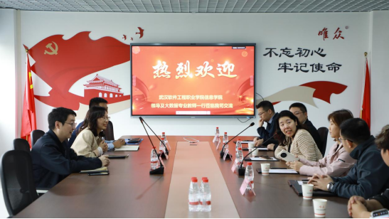 为深化产教融合、搭建校企协同育人新平台,2026年4月13日下午,武汉软件工程职业学院信息学院副院长孙琳、大数据教研室主任张采奕及大数据专业骨干教师团队一行莅临唯众,开展深度交流与技术研讨。我司销售总经理苏丹丹、技术经理郭瑞、销售经理王波全程热情接待并陪同交流。