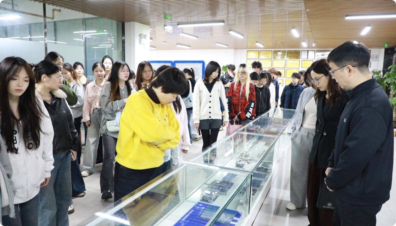 交流伊始,在公司代表的陪同下,师生团队先后参观了唯众公司教学仪器产品展厅、AI心理健康产品展区及产品测试车间。销售经理王波向同学们详细介绍了公司的核心技术架构、教仪实训装置应用场景及行业实践成果,结合真实项目案例讲解了信息技术行业的岗位需求与技能要求,让同学们直观感受了前沿技术与行业发展趋势。