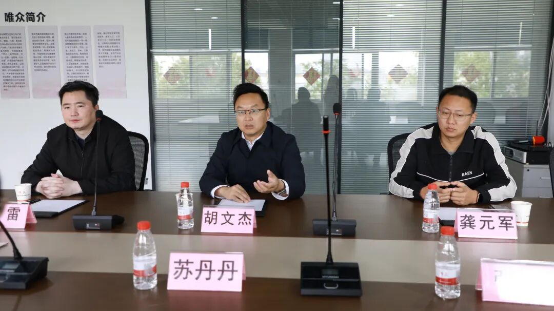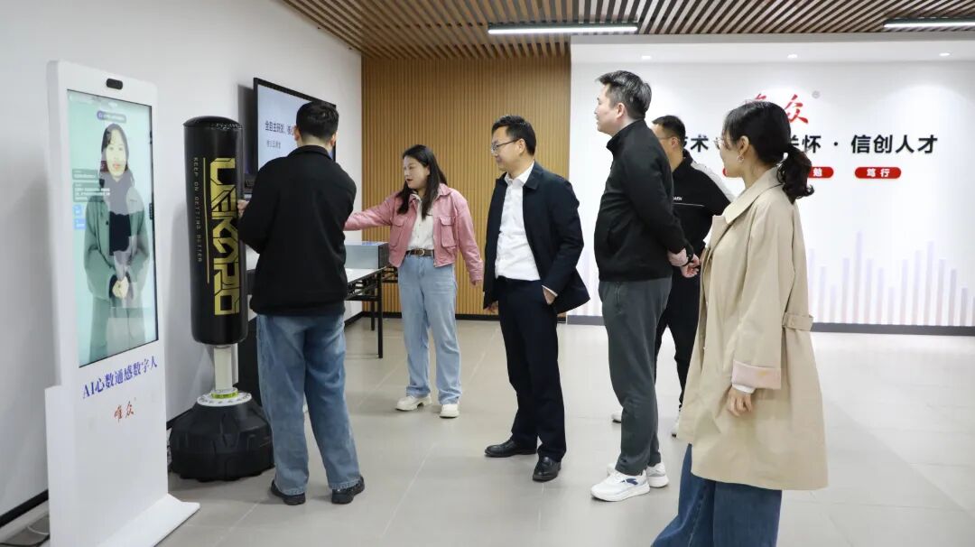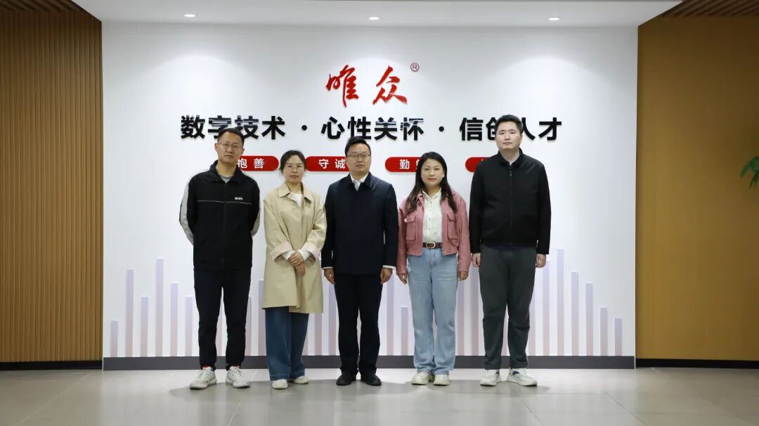 2026年04月24日,咸宁职业技术学院院长胡文杰带队,携大数据专业主任李雷、专业主任龚元军一行,莅临武汉唯众智创科技有限公司(以下简称”唯众”)开展考察交流活动。唯众销售总经理苏丹丹、销售经理张菊及技术总监代西进行了热情接待,双方就人工智能实训室建设、专业人才培养等议题进行了深入探讨。