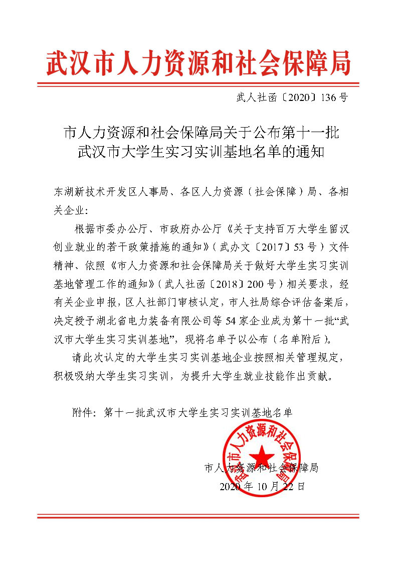 武汉市人力资源和社会保障局经过企业申报、资格审核、评估备案、会议研究等一系列严格程序,最终甄选出54家企业成为第十一批“武汉市大学生实习实训基地”。旨在鼓励广大优秀企业勇担社会责任,争做新时代的领头羊。