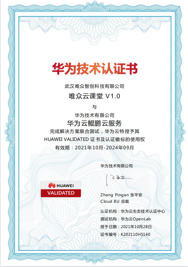 2021年10月29日,武汉唯众智创科技有限公司(简称:唯众)基于华为云服务开放能力,自主研发的“唯众理实一体云课堂”通过华为云严选实验室认证。唯众理实一体云课堂涵盖 “备课、授课、学习、实训、考试、评测”完整教学流程,联合华为深度构建支持多种教学模式的云端一体化教学管理服务体系。