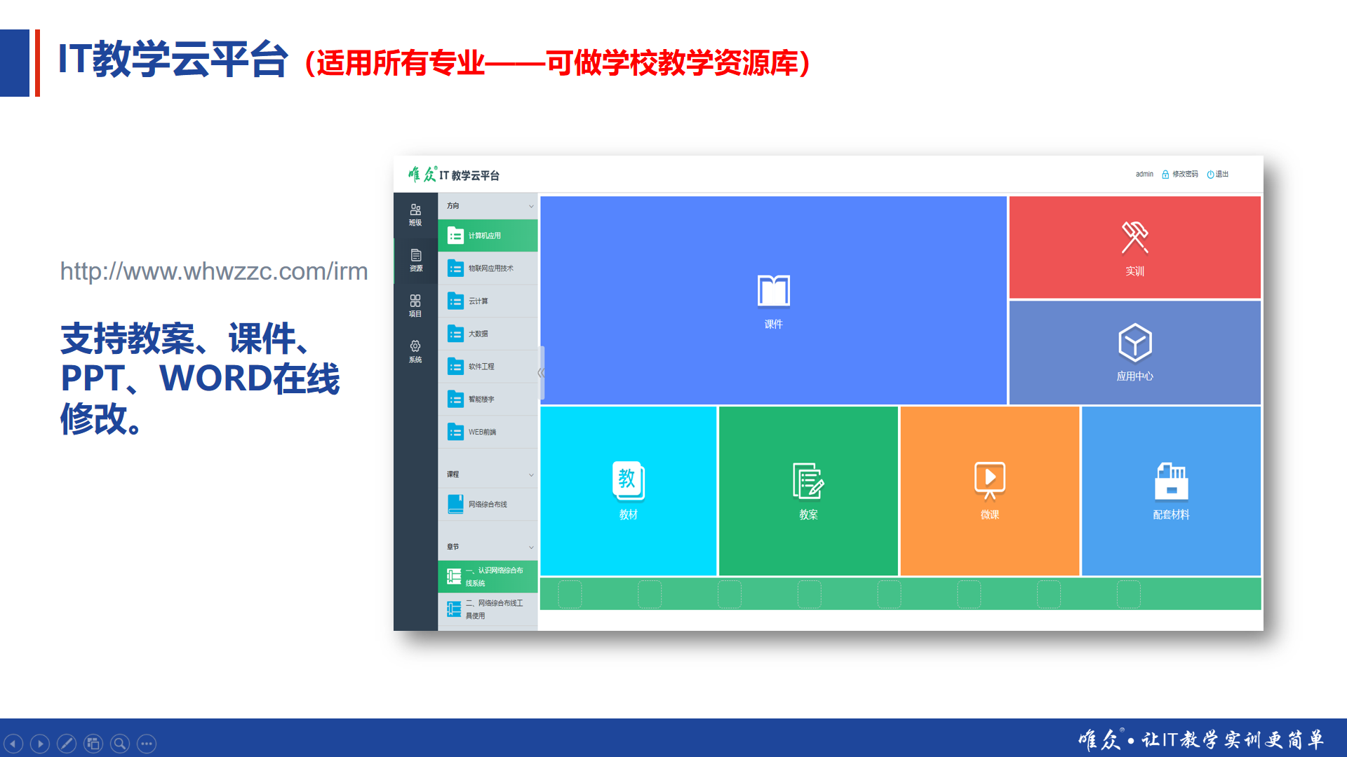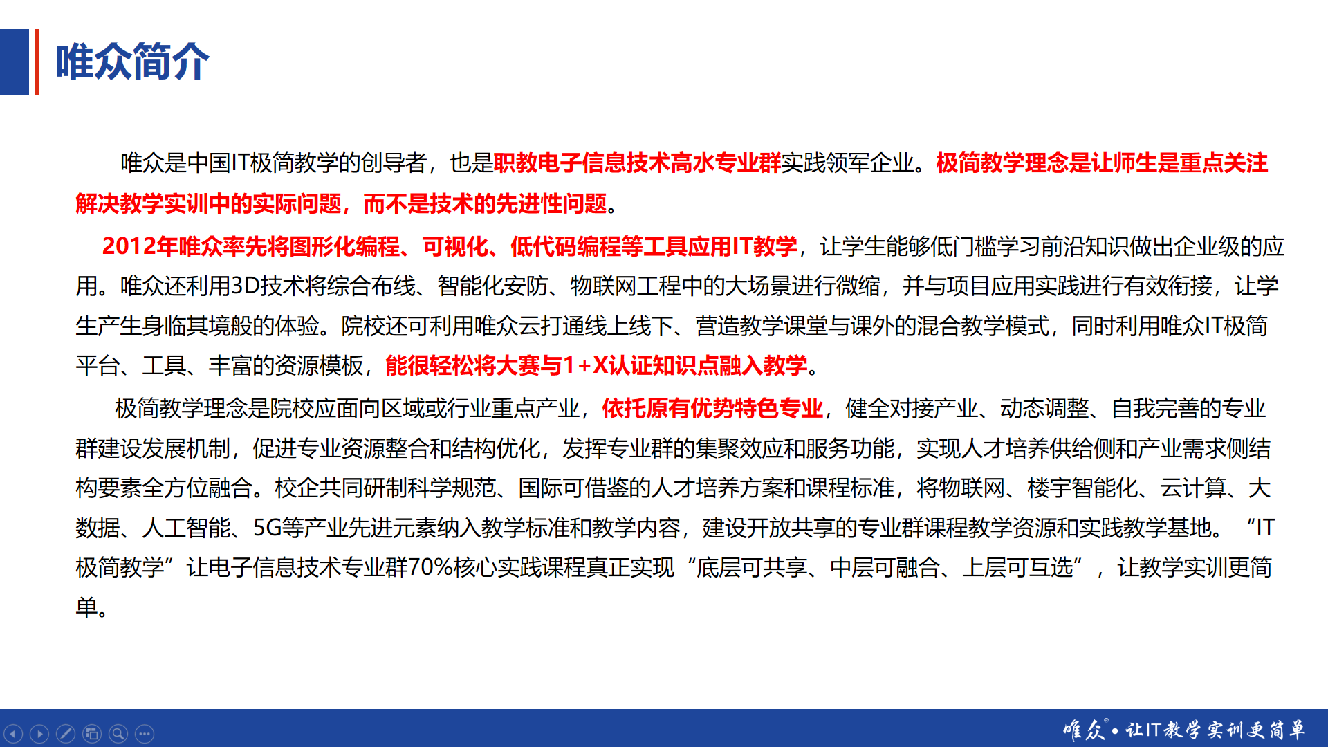 报告上他对武汉唯众智创科技有限公司的发展历史、目前的职教现状、政策背景、国家教学标准、以及唯众公司在职教行业十余年的教学实践进行了经验分享,获得在场领导一致好评。