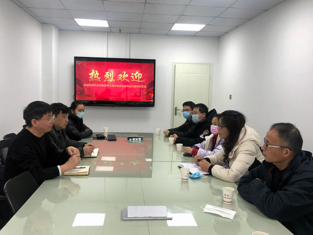 2021年1月22日,湖北科技职业学院软件工程学院院长王敏和副院长孙俊等领导及教师一行赴武汉唯众智创科技有限公司看望慰问在企业顶岗实习的教师,了解他们实习期间的工作、生活情况。武汉唯众智创科技有限公司董事长辜渝傧、总经理冉柏权进行了热情的接待,就校企合作、产学研等事宜与企业进行了深入的交流与探讨。