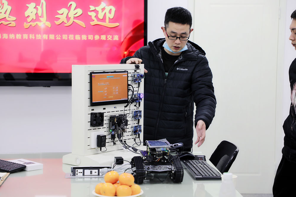 2021年3月2号下午,湖南海纳教育科技有限公司任毅总经理一行三人就“高职人工智能服务专业建设”到我司进行调研,唯众产品技术总监陈家枫、销售部经理李莉进行了热情接待。
