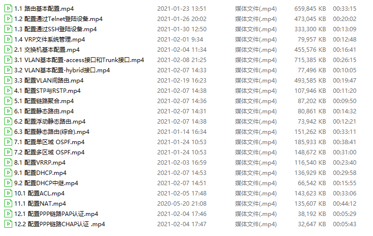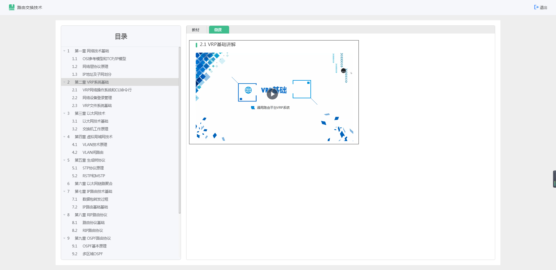 教学资源主要涵盖了网络专业核心课程、实训案例课程相关的微课、实验视频、教学课件、实验环境、实验指导书等内容,通过初级、中级、高级划分,使课程实训资源分类化管理,教学内容更有针对性。