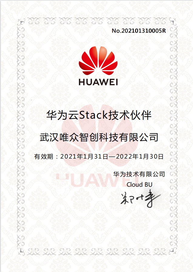 2021年1月,唯众通过华为云严格审核,成为华为云解决方案伙伴。