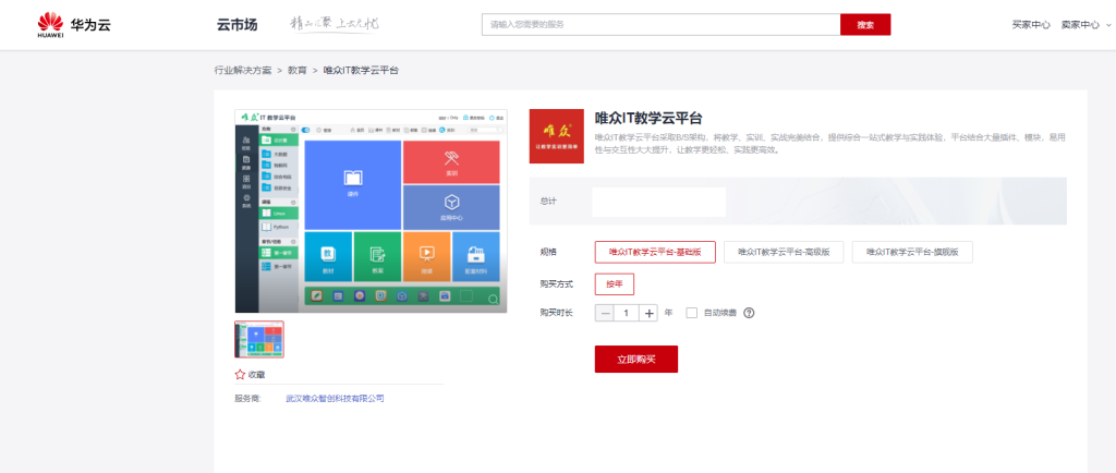 唯众IT教学云平台将通过华为云严选商城,以SaaS服务模式面向华为云开展全面合作。