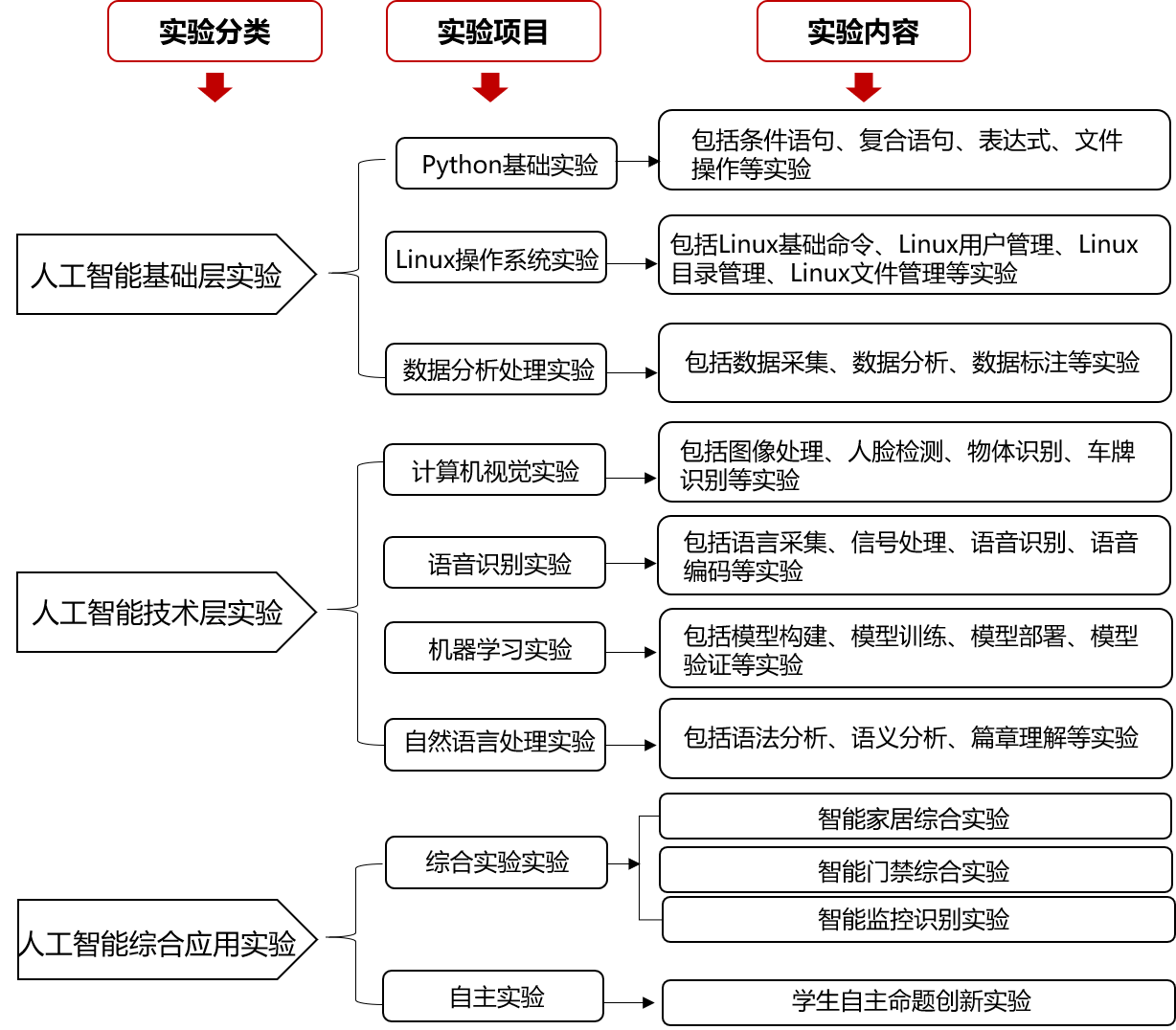 人工智能技术层实验主要是针对人工智能的技术层技术,包括:计算机视觉实验、语言识别实验、机器学习实验、自然语言处理实验。计算机视觉实验分为图像处理、人脸检测、物体识别、车牌识别等实验;语音识别实验包括语言采集、信号处理、语音识别、语音编码等实验;机器学习实验包括模型构建、模型训练、模型部署、模型验证等实验;自然语言处理实验分为语法分析、语义分析、篇章理解等实验。