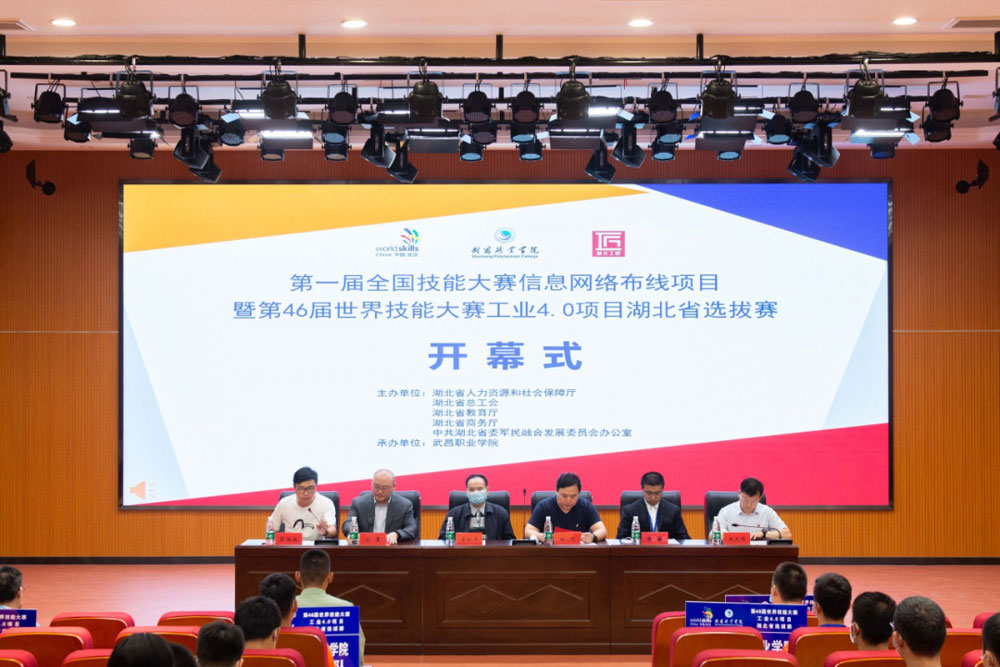 2020年9月28日,第一届全国技能大赛信息网络布线项目暨第46届世界技能大赛工业4.0项目湖北省选拔赛(决赛)在武昌职业学院如期举行。本次比赛由湖北省人力资源和社会保障厅、湖北总工会、湖北省教育厅、湖北省商务厅、中共湖北省委军民融合发展委员会办公室主办,武昌职业学院承办,武汉唯众智创科技有限公司协办,共有来自省内多所院校的16支参赛队同场竞技。湖北省技能大赛鉴定指导中心竞赛部副部长刘闪,全国大学生电子设计大赛湖北赛区专家组成员李和平,同济大学工程师朱瀛,西门子有限公司华中区业务拓展总监左夏,武昌职业学院党委书记王大耀,武昌职业学院世界技能大赛办公室主任彭传波出席开幕式。唯众公司冉柏权受邀担任比赛现场判长。武汉唯众智创科技有限公司提供全方位技术支持。