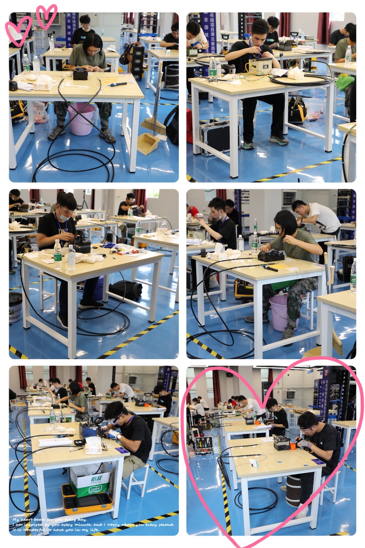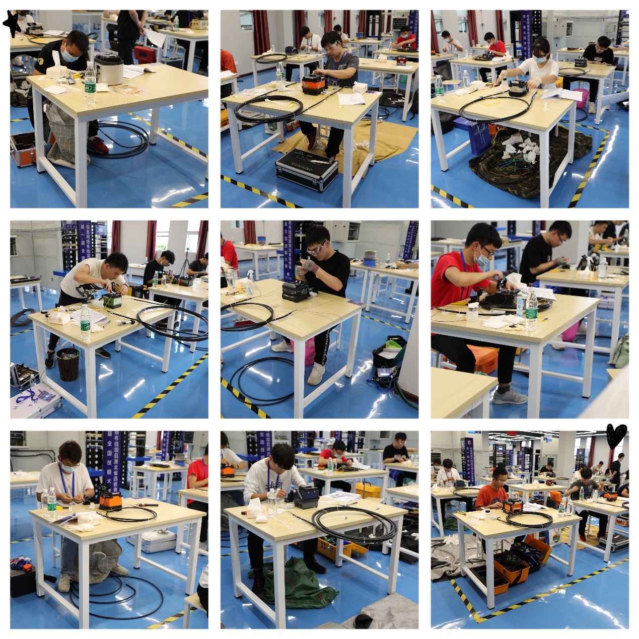 比赛当日,艳阳高照,参赛选手摩拳擦掌,以最佳的竞技状态开始了一天的比赛。比赛分为模块A结构化布线系统、模块B光纤熔接速度和熔接质量竞赛两个内容。