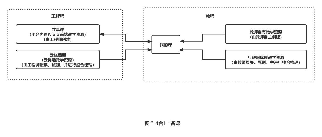 (2)云优选课则由平台工程师精心从互联网上搜集、甄别相关课程的第三方资源,如B站上的优秀教学课程,并进行整合梳理为不同类别的教学资源,方便教师搜索关键字,择取符合当堂课程的教学的优质资源并将之穿插到当堂课程的内容编辑中去。