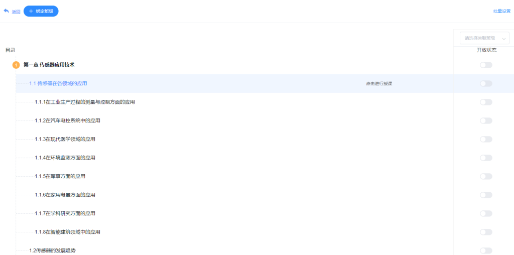 教师可绑定一个至多个班级,针对不同班级开放不同章节点后,学生即可根据教师布置的不同章节点的预习任务进行预习。