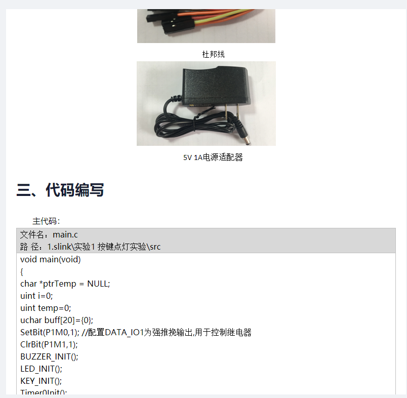 ①添加实验:教师可编辑“按键控制LED指示灯闪烁”实验文档,对实验代码编辑部分进行介绍,并结合物联网综合实训装置,完成整套实验。