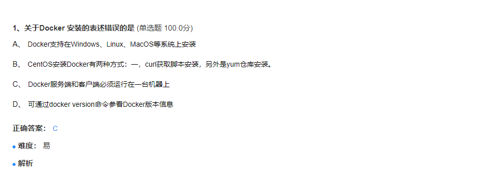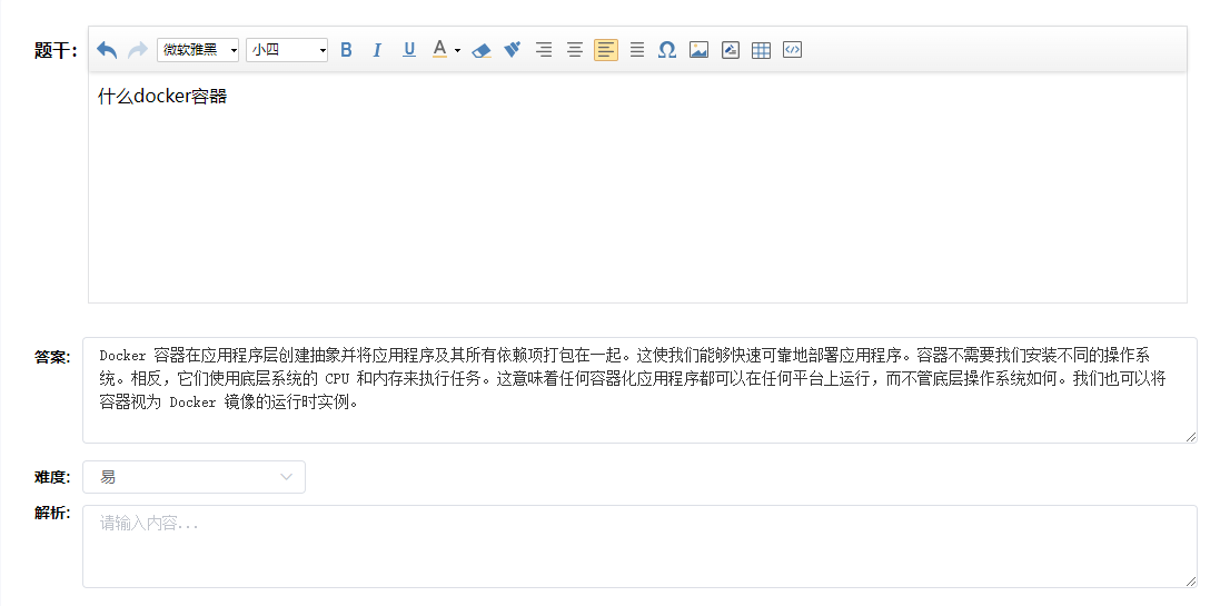 教师选择手动创建新试卷或随机从题库中抽取试题组卷,简化教师教学过程,减少不必要的时间浪费,具体的“Docker”试卷主观题展示图如下所示。