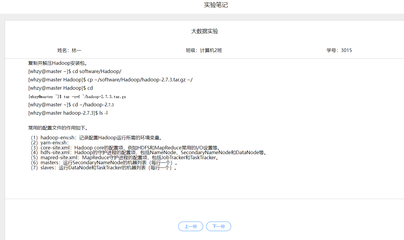①添加实验:准备环节结束后教师可编辑Hadoop平台搭建实验文档,介绍Hadoop平台搭建相关概念,发布第一个网页示范代码,向学生展示实验要求。