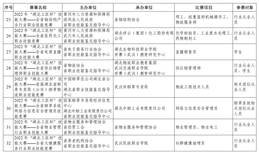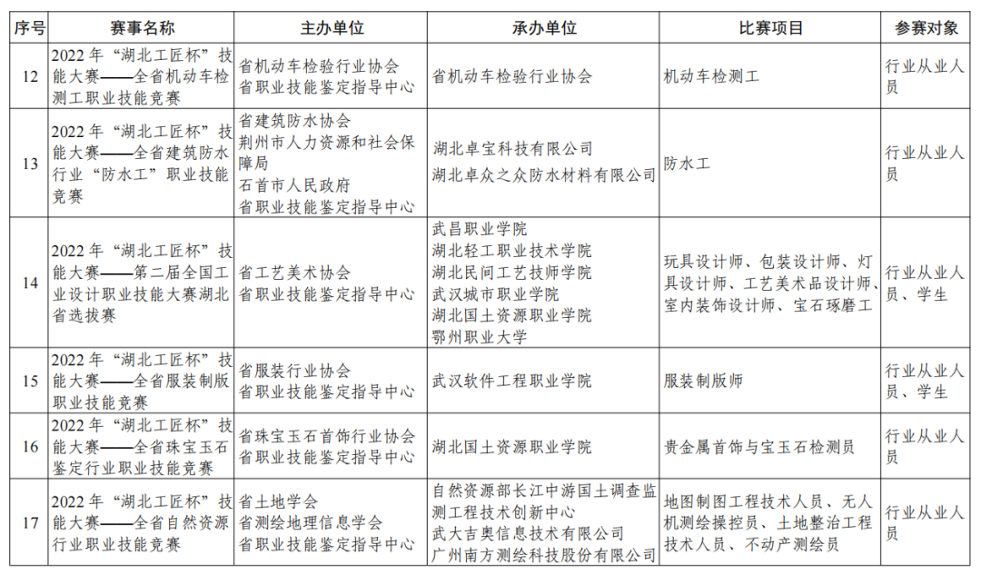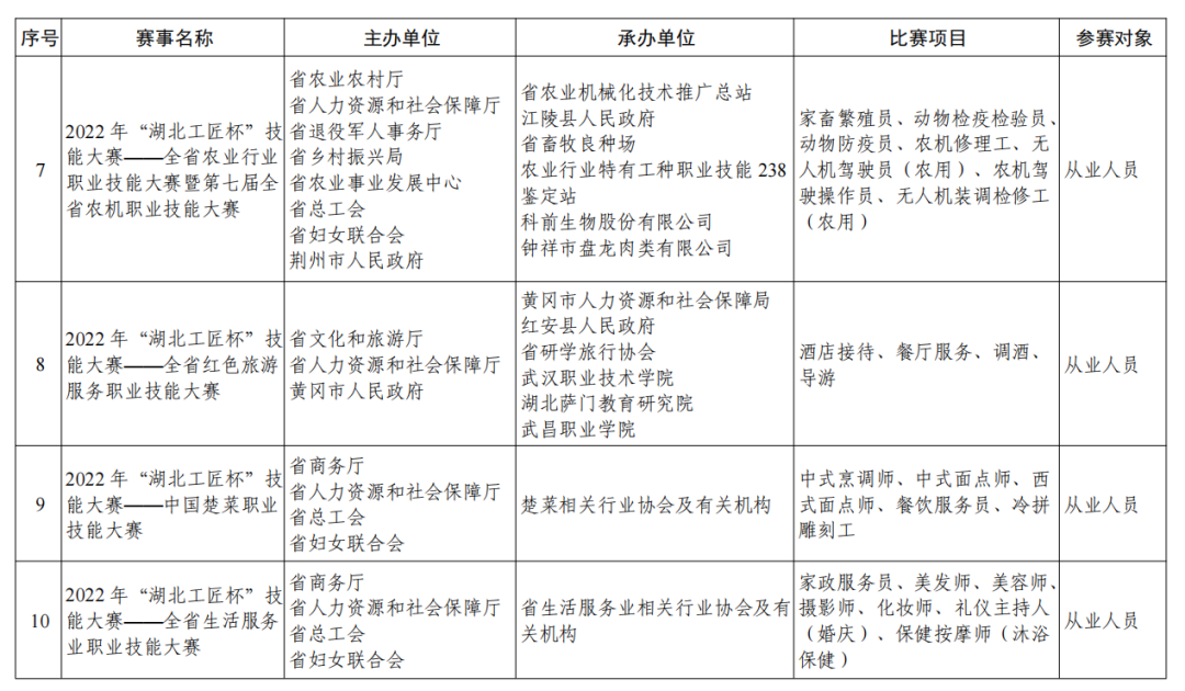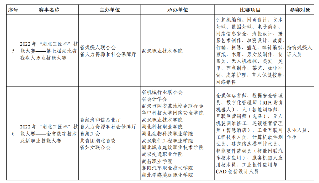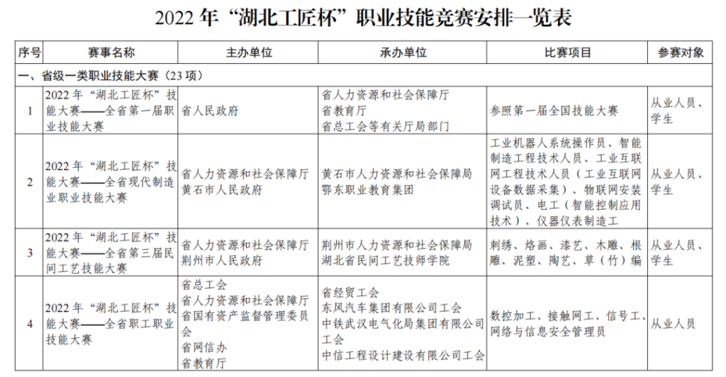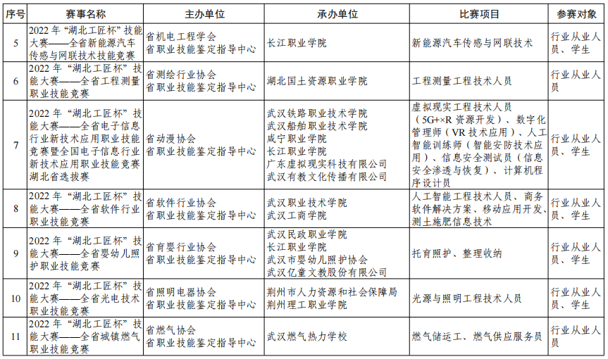 2022年“湖北工匠杯”职业技能竞赛工作坚持以习近平新时代中国特色社会主义思想为指导,深入贯彻落实习近平总书记对技能人才工作的系列重要指示和致首届全国职业技能大赛贺信精神,围绕湖北技能强省战略工程,着力提高职业技能竞赛科学化、规范化、专业化水平,秉承开放、公平、绿色、廉洁的办赛理念,创新竞赛形式、提高竞赛质量、推广竞赛成果,实现以赛促学、以赛促训、以赛促评、以赛促建,大力弘扬工匠精神,激励更多劳动者特别是青年一代走技能成才、技能报国之路,为全面提高我省劳动者素质、推动经济社会高质量发展提供坚实的技能人才基础。