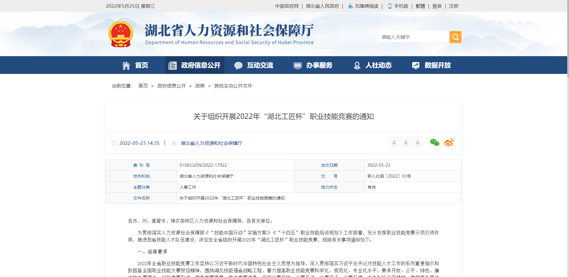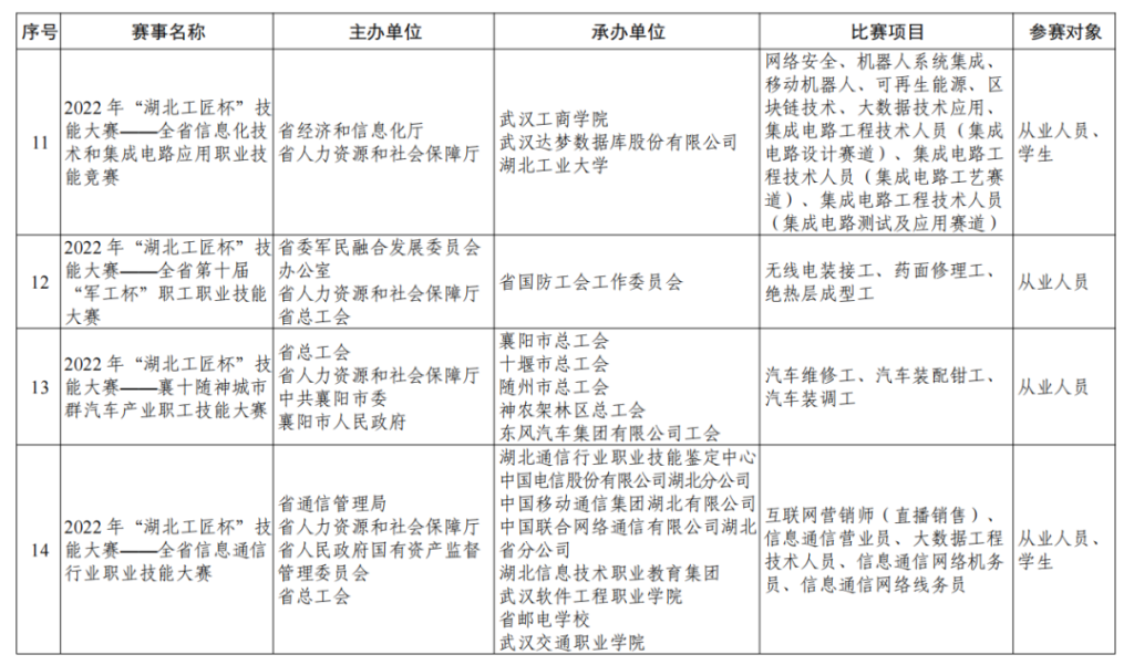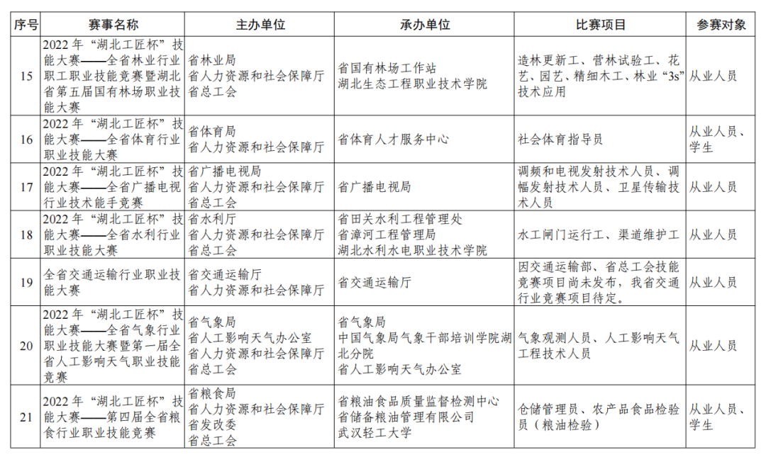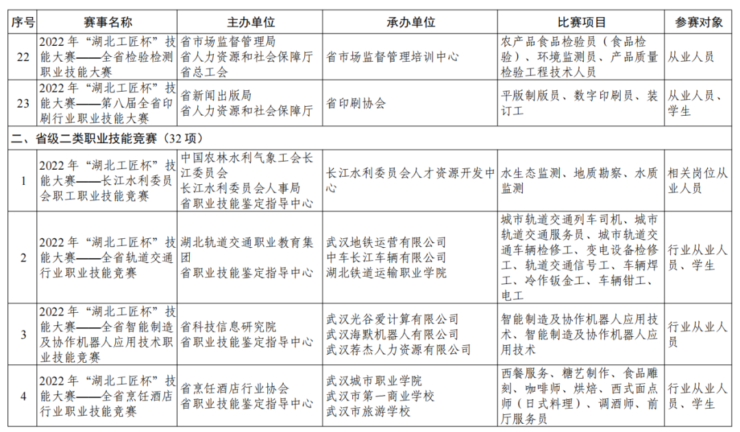 2022年“湖北工匠杯”职业技能竞赛工作坚持以习近平新时代中国特色社会主义思想为指导,深入贯彻落实习近平总书记对技能人才工作的系列重要指示和致首届全国职业技能大赛贺信精神,围绕湖北技能强省战略工程,着力提高职业技能竞赛科学化、规范化、专业化水平,秉承开放、公平、绿色、廉洁的办赛理念,创新竞赛形式、提高竞赛质量、推广竞赛成果,实现以赛促学、以赛促训、以赛促评、以赛促建,大力弘扬工匠精神,激励更多劳动者特别是青年一代走技能成才、技能报国之路,为全面提高我省劳动者素质、推动经济社会高质量发展提供坚实的技能人才基础。