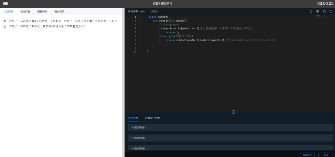 ②开始实验:师生根据教学要求,选取实验,然后点击“开始实验”就进入实验页面:实验页面采用双屏展示,左侧为实验文档区,右侧为软件开发实践操作区。平台提供提供在线开发和运行环境,集成了代码编写、分析、编译、调试等一整套工具能智能实现代码自动补全,学生可以在线提交实验内容,老师可以在线查看编程结果,让老师教学过程更高效,管理运维更方便,初学者更容易,入门更简单,快速进行最佳的学习状态。