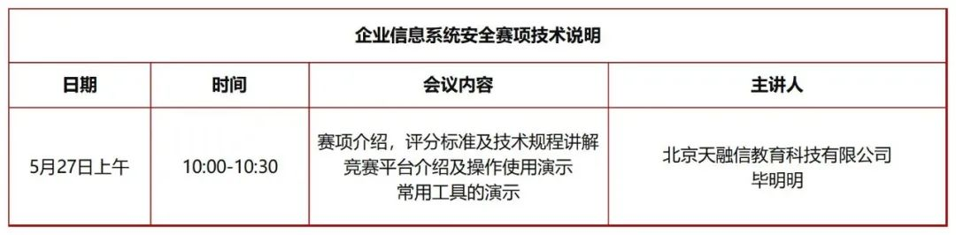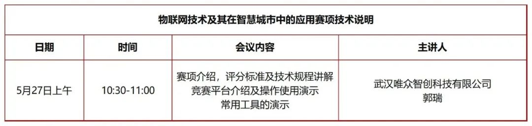 为提升办赛水平与办赛质量、推进各项筹备工作、方便各参赛队及时了解比赛相关信息,特与5月27日上午举办2021一带一路暨金砖国家技能发展与技术创新大赛之企业信息系统安全、物联网技术及其在智慧城市中的应用赛项、人工智能计算机视觉应用赛项线上技术说明会。