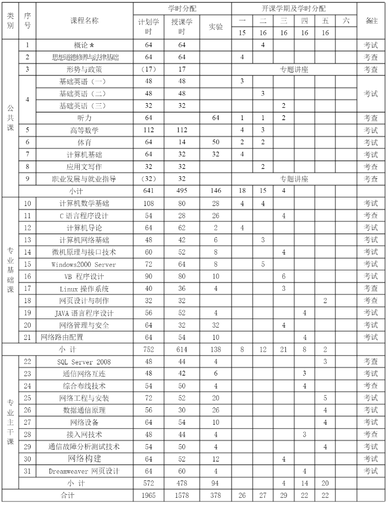 | 初级中级 | 计算机网络 | 网络基础 | 实训室2,电商、数媒、计算机基础实训中心; |