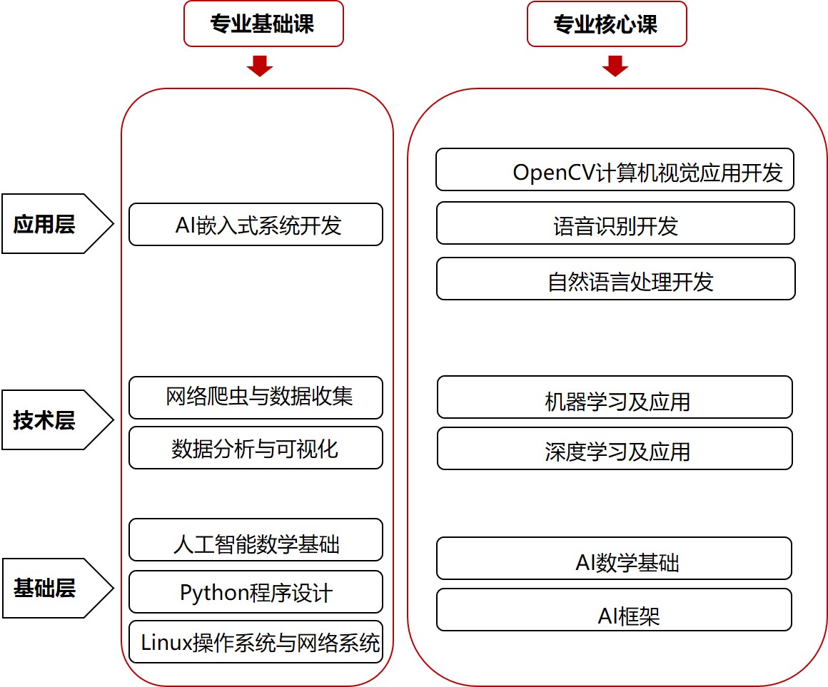 本专业培养理想信念坚定,德、智、体、美、劳全面发展,具有一定的科学文化水平,良好的人文素养、职业道德和创新意识,精益求精的工匠精神,较强的就业能力和可持续发展的能力,掌握本专业知识和技术技能,具备人工智能技术应用开发、计算机软件程序开发、数据采集与分析、系统管理与运维等能力,能够从事计算机应用行业,特别是人工智能领域相关工作的高素质技术技能人才。
