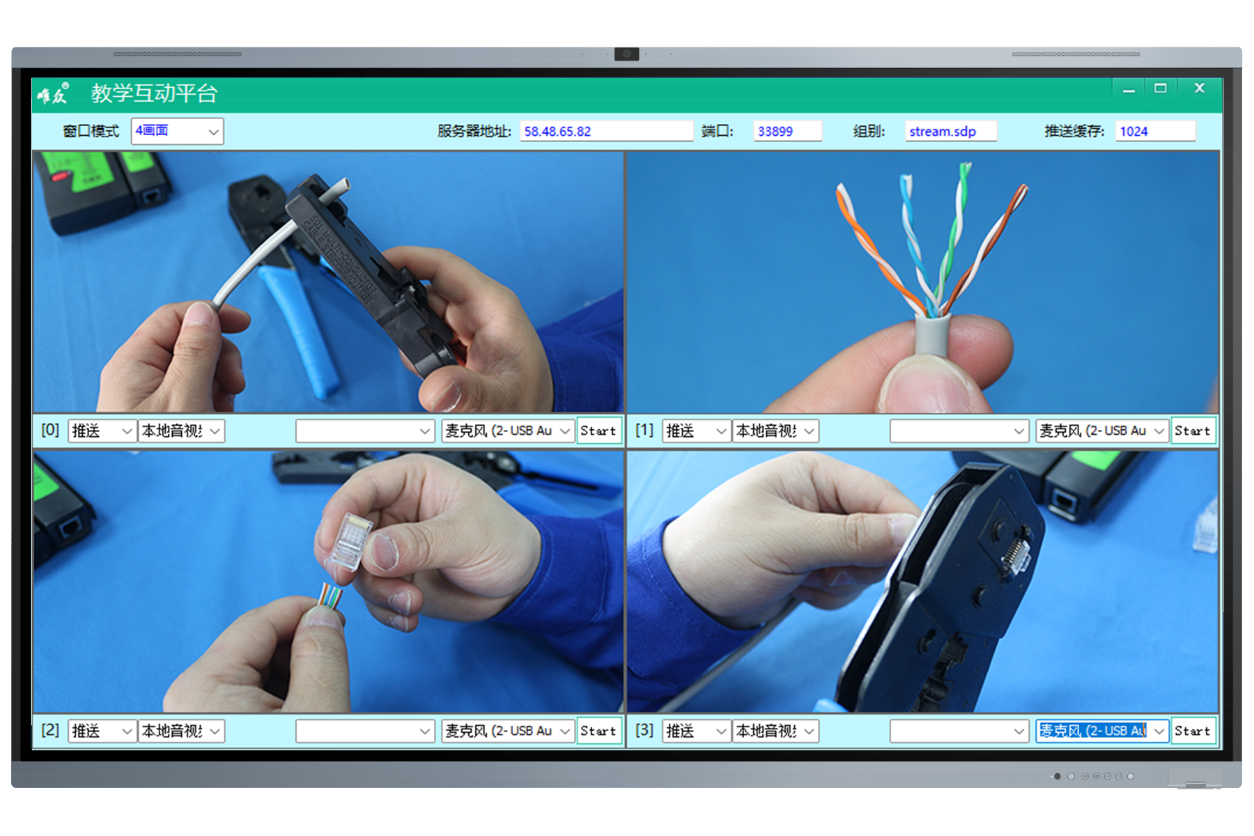 老师可以同时关注多个小组的实训过程,并对学生的实训过程进行点评、批注和讲解,形成课程中的典型案例;老师可以同时关注多个小组的实训过程,并对学生的实训过程进行点评、批注和讲解,形成课程中的典型案例;老师在开始实训之前,可以播放实训系统自带的视频资源,让学生提前学习,也支持教师插入U盘播放视频课件。