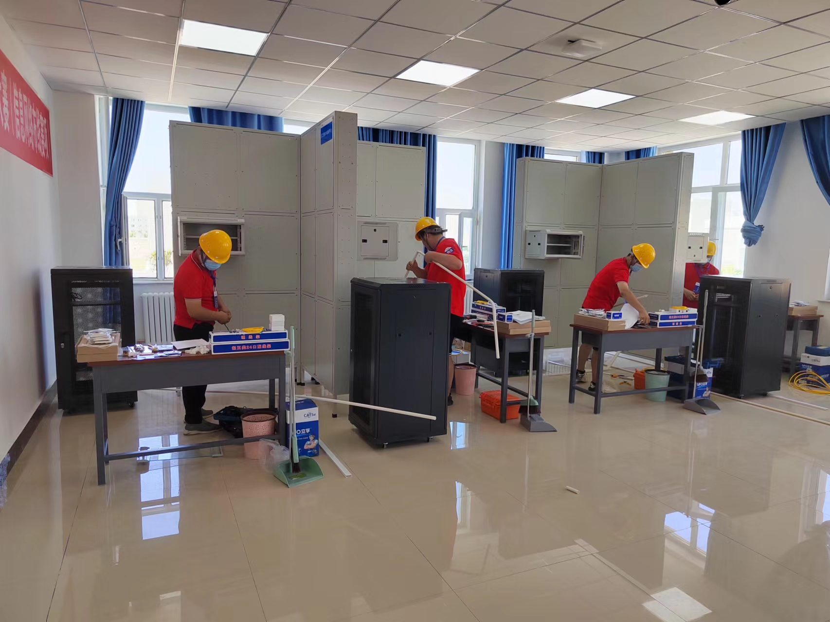 比赛当天上午进行16进8淘汰赛(光纤熔接速度赛+铜缆端接速度赛),下午进行排名赛(干线及设备间子系统安装+水平和管理间子系统布线安装赛项)。大赛每项比赛均采取实际操作的形式进行,比赛项目紧贴生产实际,不仅检验参赛选手的业务素质,更考验了他们理论联系实际、运用于实际的能力。在比赛过程中,选手们全身心投入、沉着应对,充分展示了当代青年奋勇争先的精神风貌。