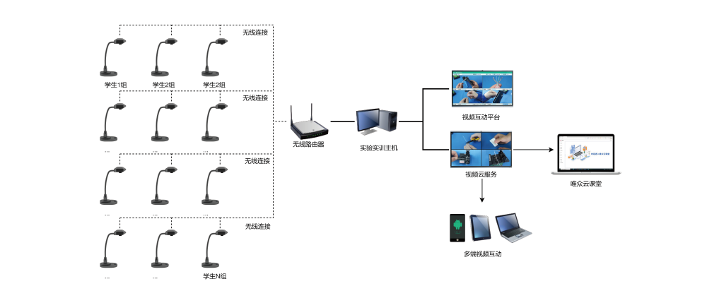 (2)高清录播系统搭配无线拍摄系统,可快速搭建拍摄环境,灵活布置拍摄机位,适应多类场景多角度拍摄,实现多种课程实训操作的应用需求;