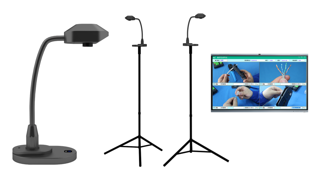 采用鹅颈式软管设计,免安装、免调试、免布线,支持多画面接入,轻松实现360度可视化实训教学拍摄效果。整体效果美观、可折叠收缩、不占位置。教师使用简单方便,每次拍摄时不需要手工接线、调整机器脚架位置等繁复操作。