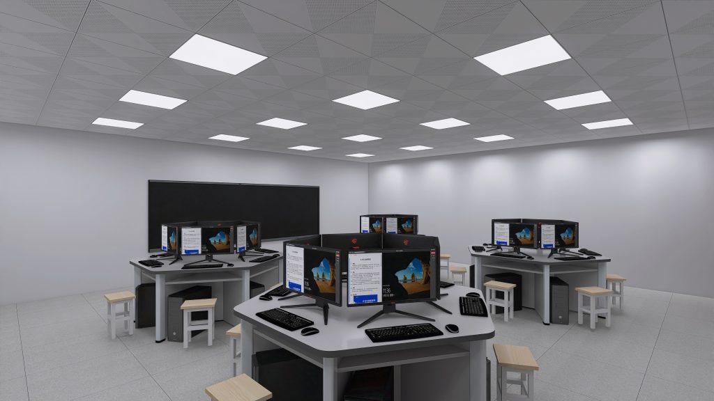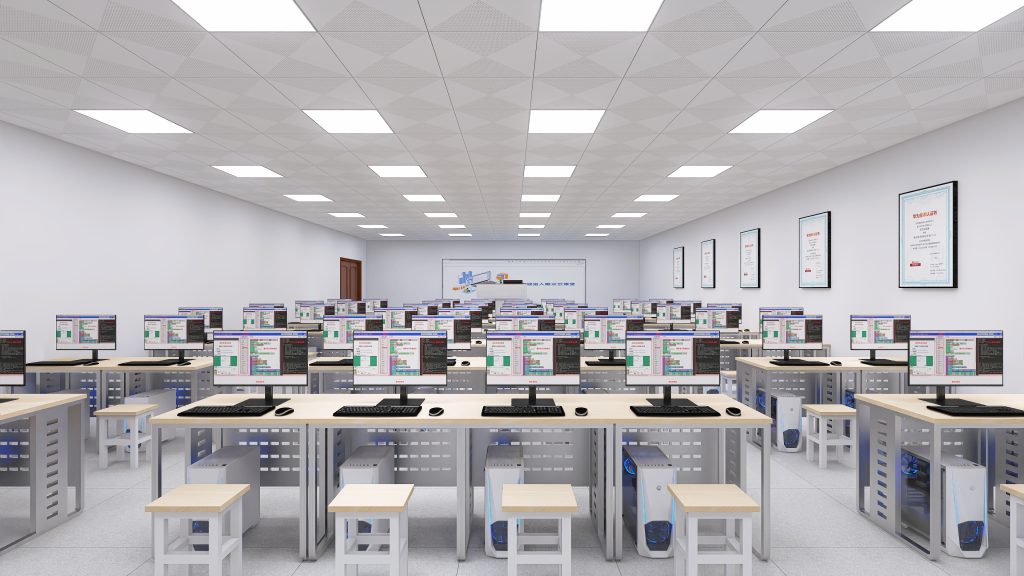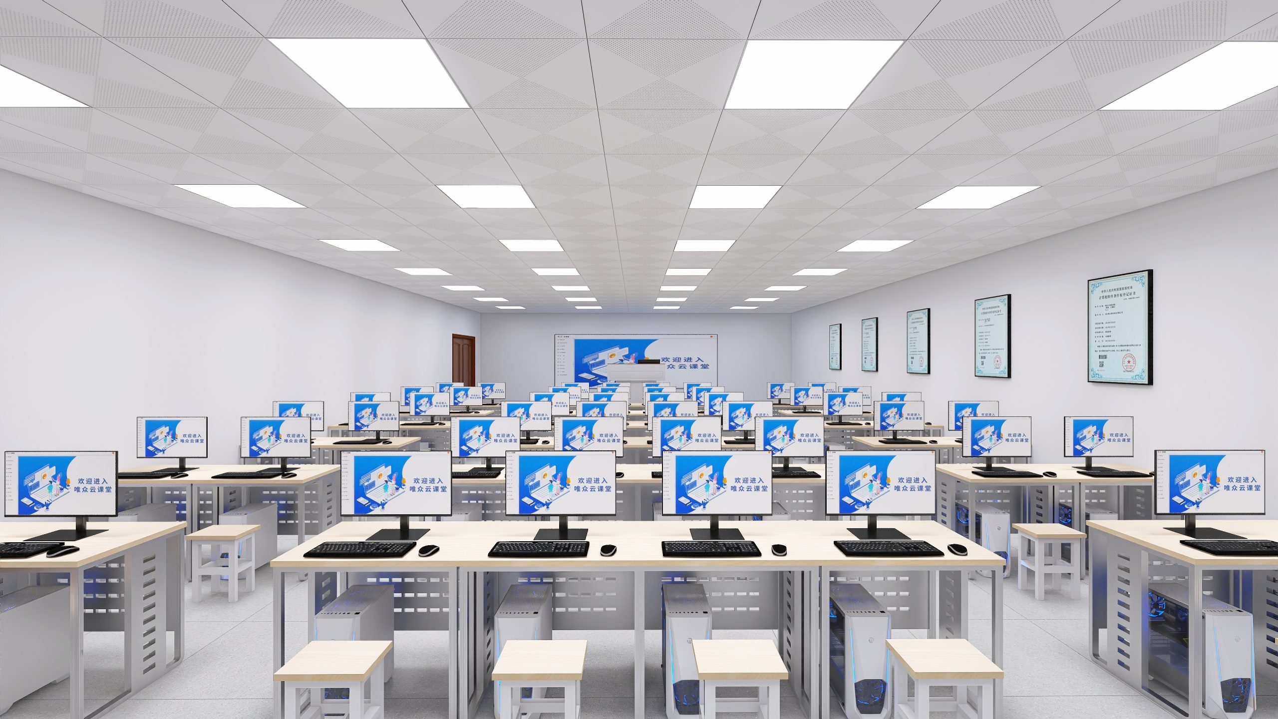 程序设计实训室规划如图 1 所示。具体位置可按实地重新规划,根据教室实地情况,使用唯众理实一体教学云平台进行教学,可以满足对48名学生进行教学。教学平台采用由理论到实践的循序渐进过程,内置丰富的实训课程设计。
