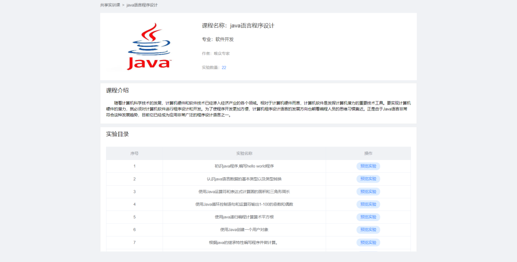 内置公共资源课程,便于老师教学:软件开发模块可内置完整的实训资源,其中包括实训文档以及在线资源包,用户可以直接进行使用。