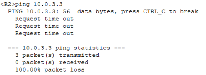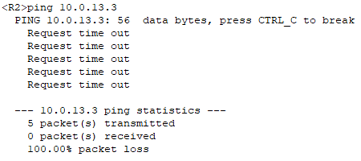 上述检测结果表明,R2不能与10.0.3.3和10.0.13.3网络通信。