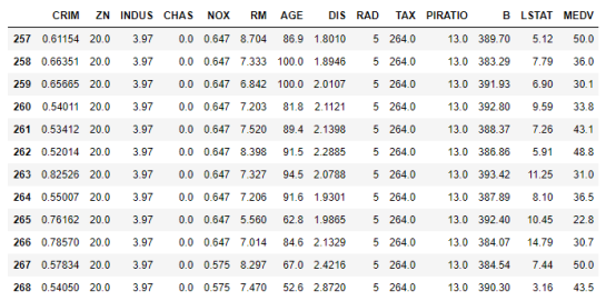 #筛选出CRIM大于0.5并且ZN大于0的字段。 df = df[(df['CRIM']>0.5)&(df['ZN']>0)] df
