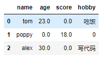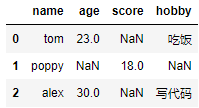 'hobby' : ['吃饭', np.NaN, '写代码']