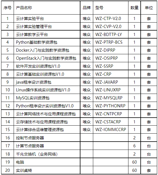 3.6.3云计算实训室建设清单