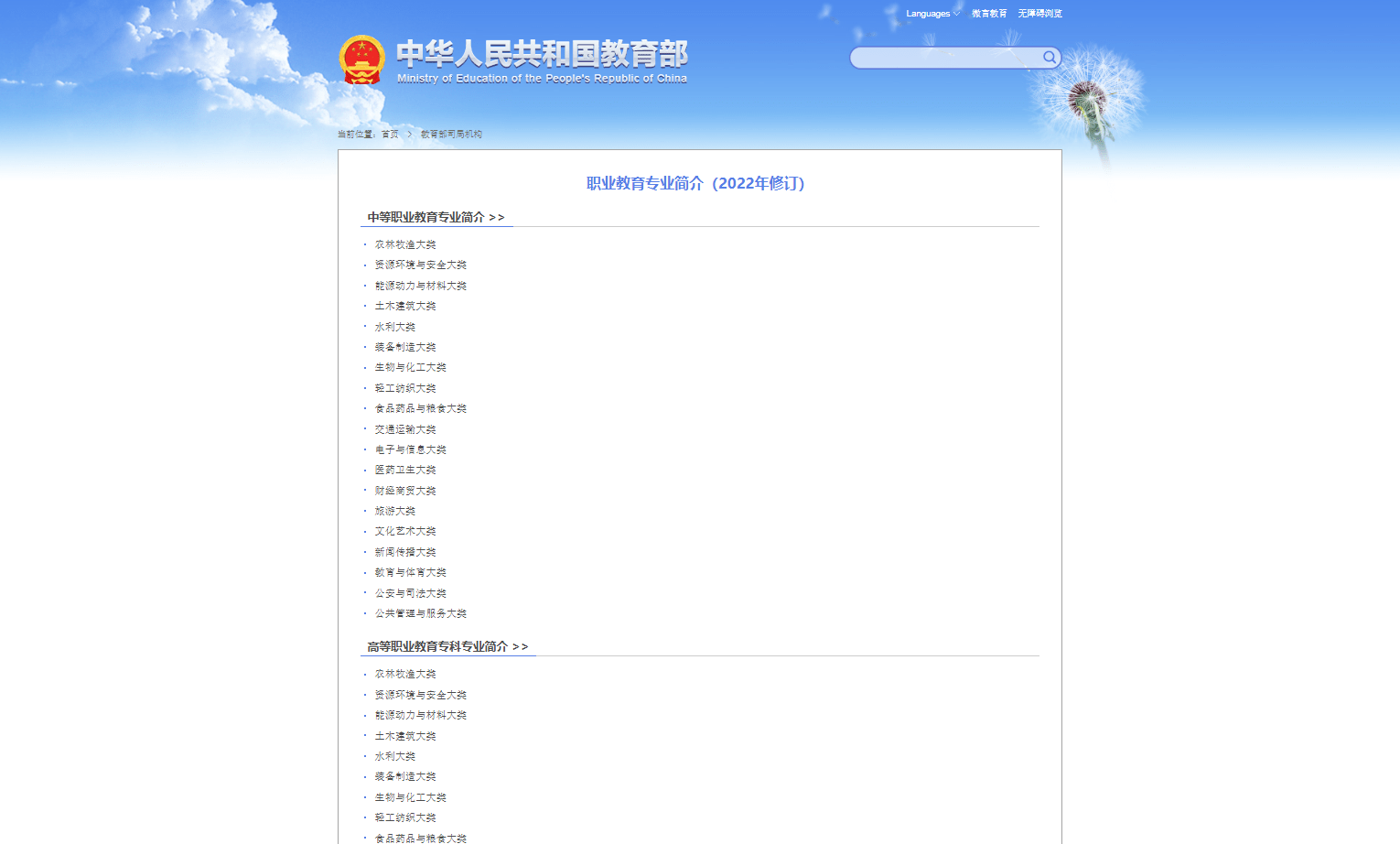 教育部表示,为了让办学主体和社会各界更加方便准确地了解职业教育专业人才培养的基本内容,组织研制了与新版专业目录配套的中职、高职专科、高职本科的专业简介。