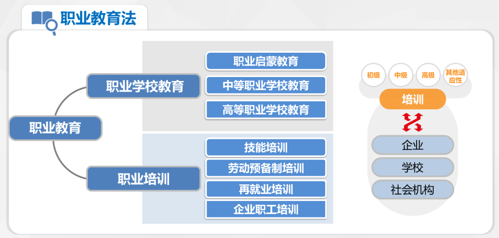 三是职业学校教育与职业培训并重,职业教育责任担当更大