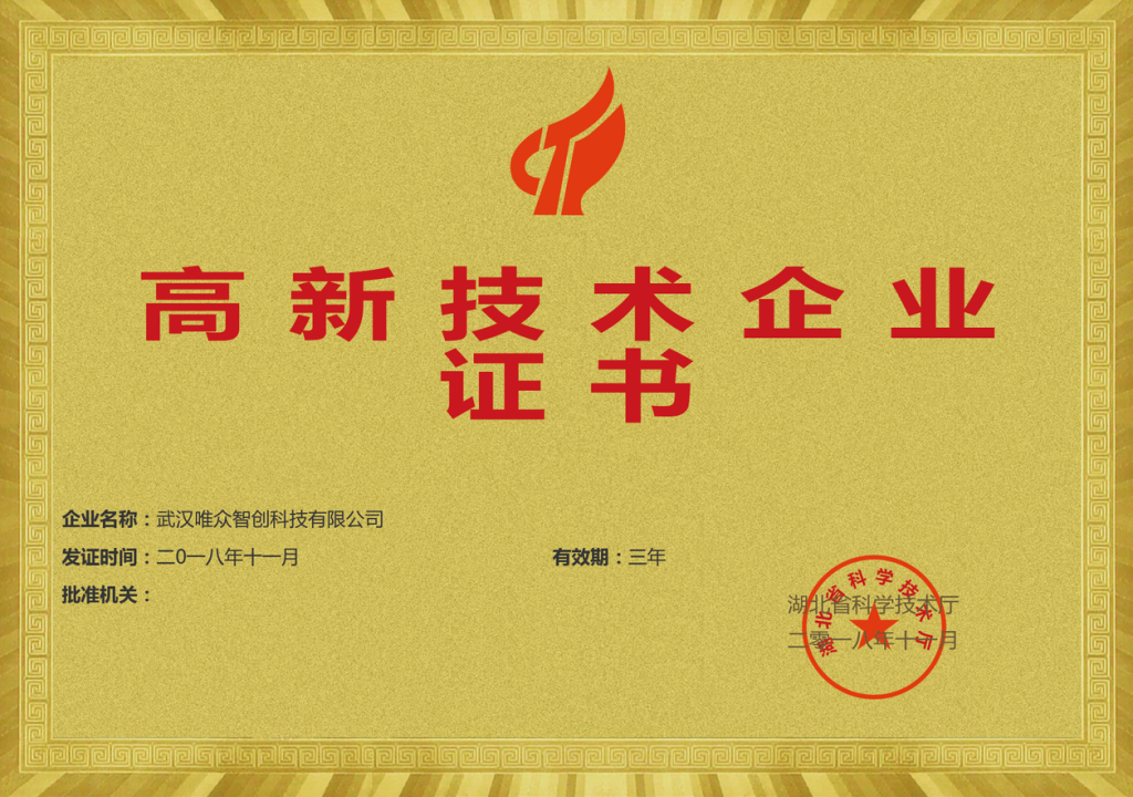 武汉唯众智创科技有限公司高新技术企业