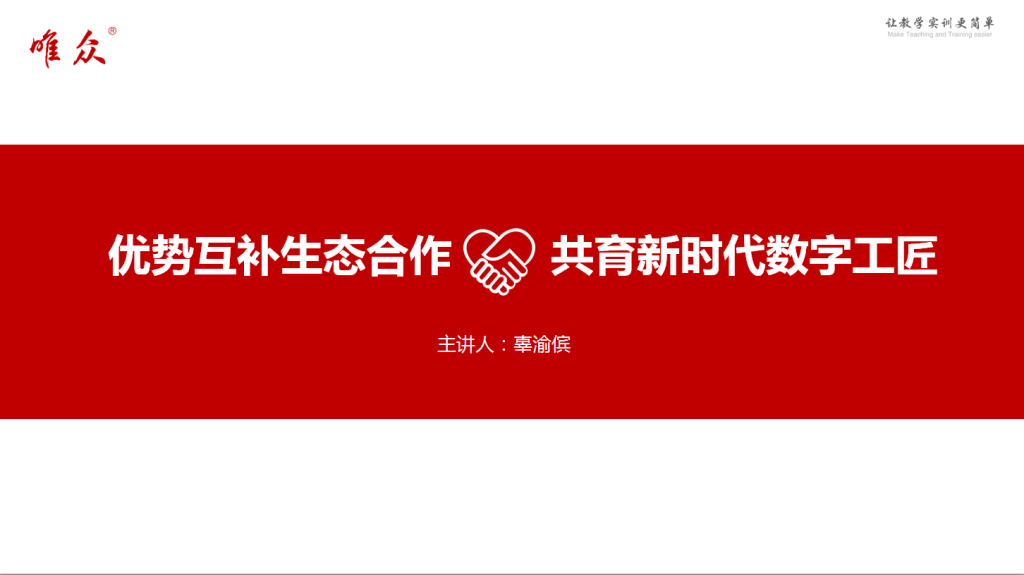 唯众是职教电子信息技术高水平专业群实践领军企业(大数据实训室、云计算实训室、物联网实训室、网络仿真实训室、WEB前端实训室、人工智能实训室、数字媒体实训室、综合布线实训室、软件开发实训室),是华为联合运营合作伙伴。多年来,公司一直致力于高水平职业教学建设,打造高质量职教实训基地,助力数字技术人才的培养,更好推动职业教育高质量发展。