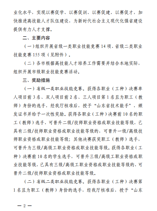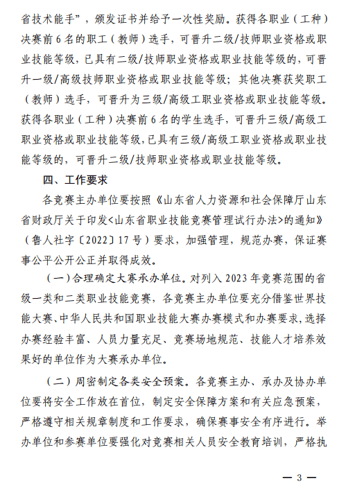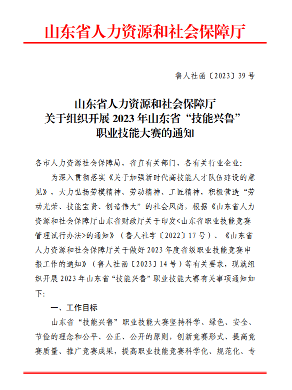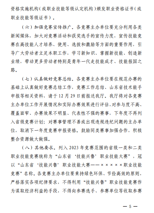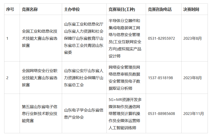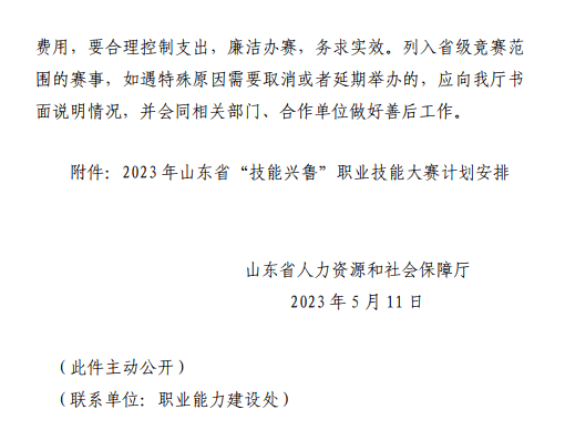 2023年山东省“技能兴鲁”职业技能大赛计划安排