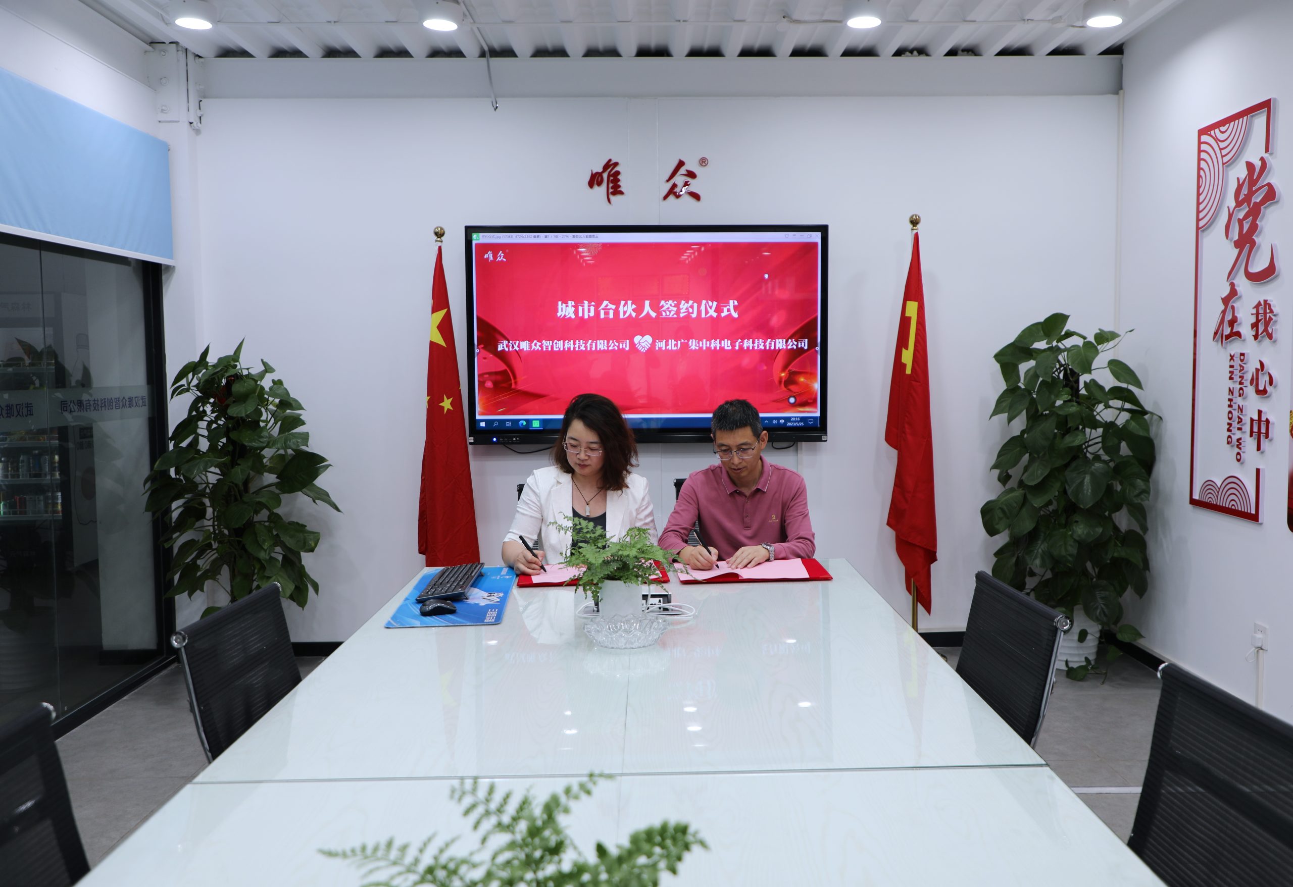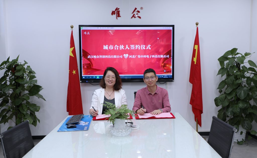 5月26日,武汉唯众智创科技有限公司与河北广集中科电子科技有限公司签署了城市合作协议,签约仪式在唯众会议室举行。双方将在职教领域展开合作,共同推动行业发展,优势互补,合作共赢,共育大国工匠!