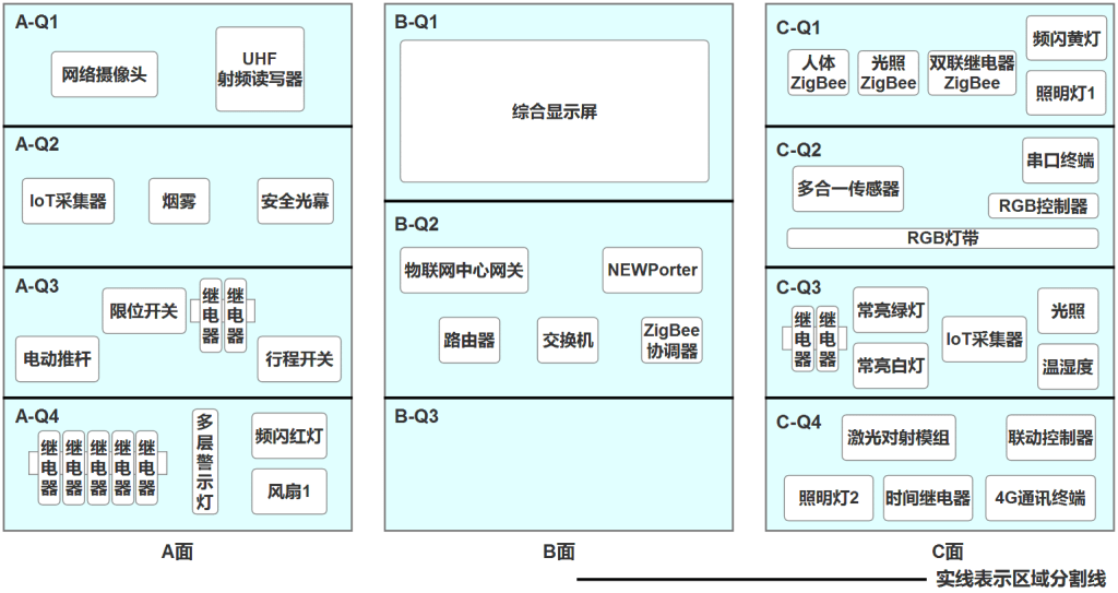 4.要求C-Q3区域中的模拟量、负载设备通过该区域中的IoT采集器实现数据通讯与控制。