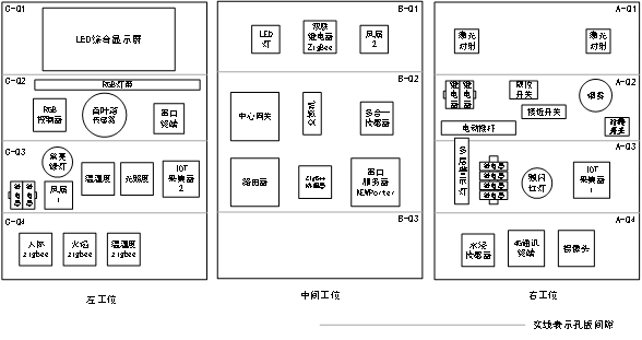 (1)将ZigBee节点盒安装到B面工位的B-Q3区域中,在小辣椒天线上贴上标签纸,标签纸写上“C-1”,通上电源等待裁判评分。