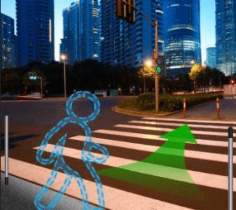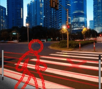 8.常亮指示灯-绿点灭,同时光电传感器触发联动转动指示灯-红报警,显示闯红灯图。